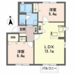 2LDK 54m²